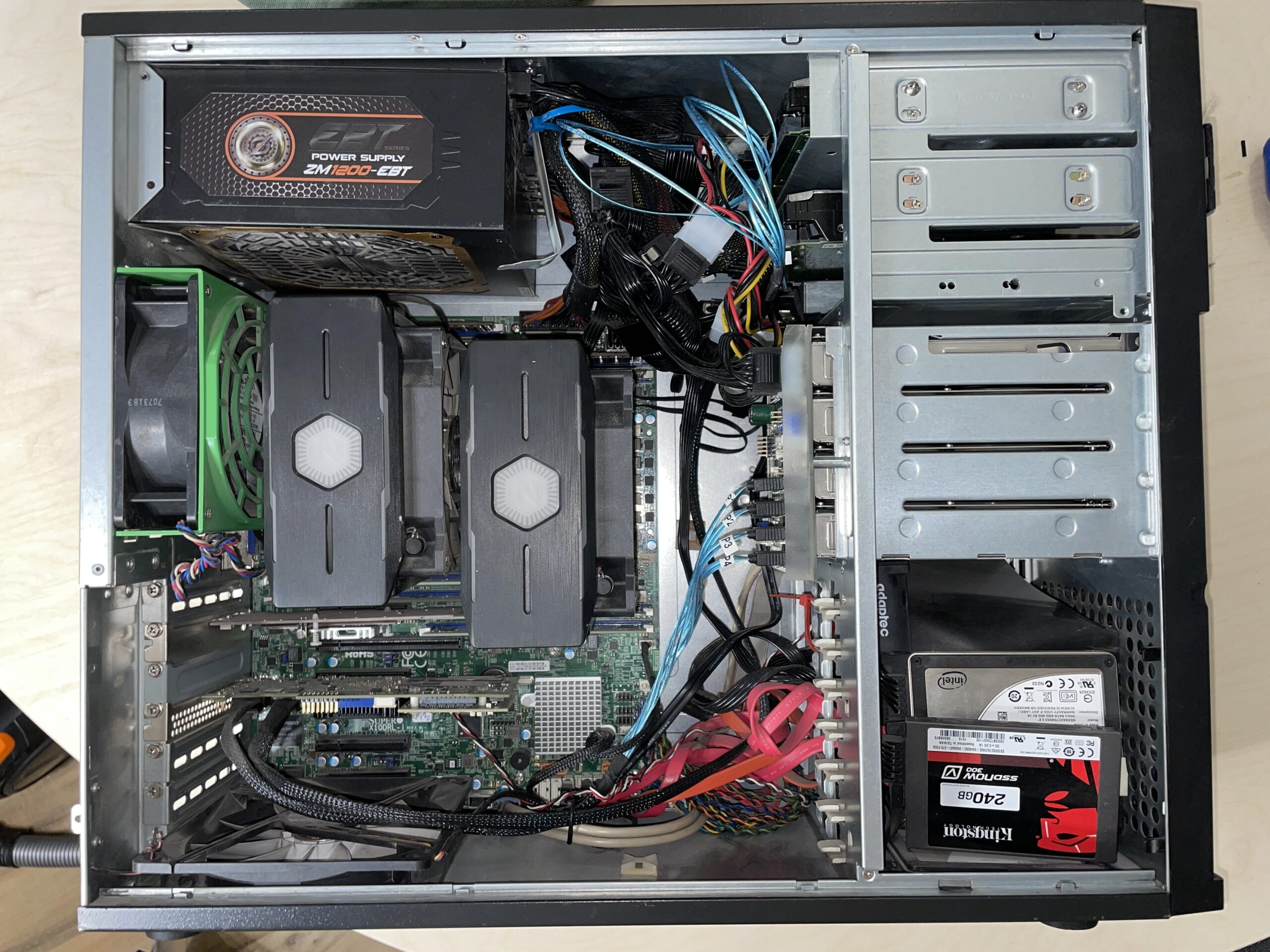 Времени чтобы разобраться долго не находилось — вся осень была потрачена на разборки с Raspberry, толчок к решению пролемы произошел, когда в мое распоряжение попал рабочий сервер Supermicro X10DRL-i, 2xIntel Xeon 2.30GHz, 128 gB DDR4, nvme 500 gb + 4 tb Adaptec Raid10. Надежная, но устаревшая машина 2012 года, раза в три медленнее текущего сервера БТМ.