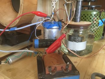 • Сразу скажу что вместо соды использовал буру.Сравнение с содой-следующий этап.Бура дает меньшее внутреннее сопротивление «диода»,и также именно бура упоминается в качестве электролита в первых конденсаторах.Тоже минерал,тоже можно найти природную.Раствор применил насыщенный,затем отфильтровал от нерастворенной.
