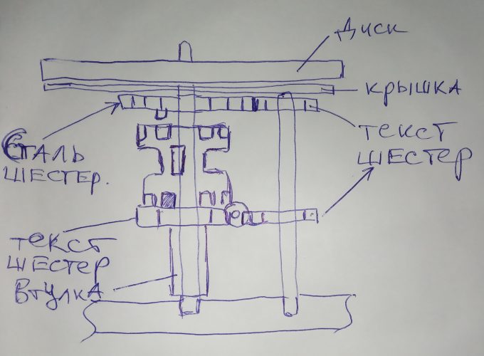 Стальная шестерня сопрягается с текстолитовой шестерней — внизу на фото 1.