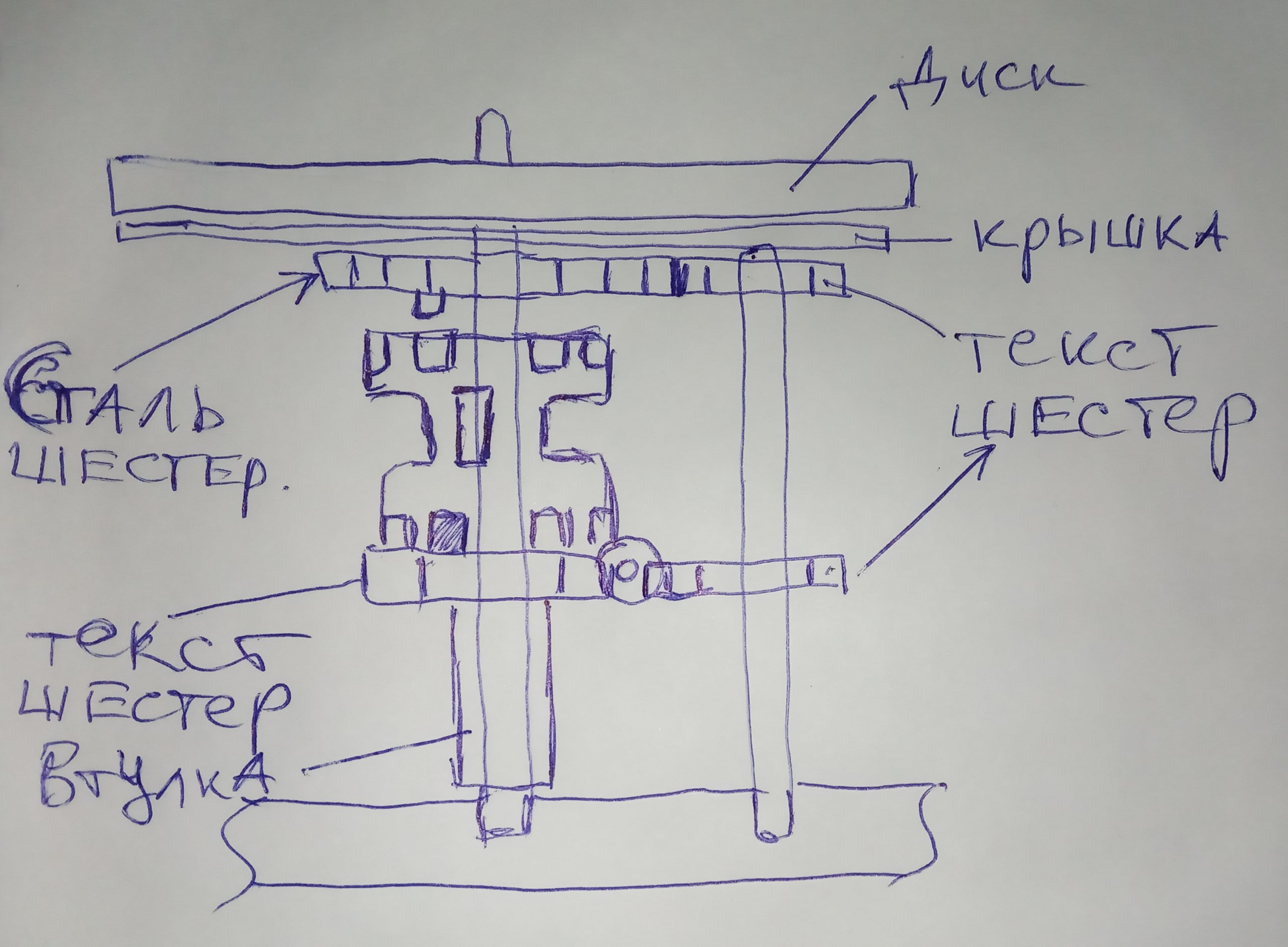• Так и не понял ничего.. нарисовал, как я вижу систему по этим фотографиям. Где-то спрятана еще одна шестеренка, или я просто туплю?
